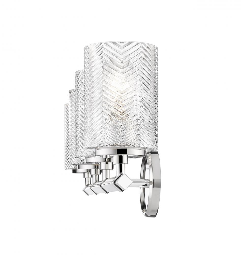 Wonderfully stylish in its design, yet timeless and sophisticated in its appeal. The Dover Street series features a hand-blown herring bone pattern glass suspended by a rhombus shaped bar featuring design cuff details. Available in polished nickel or brush