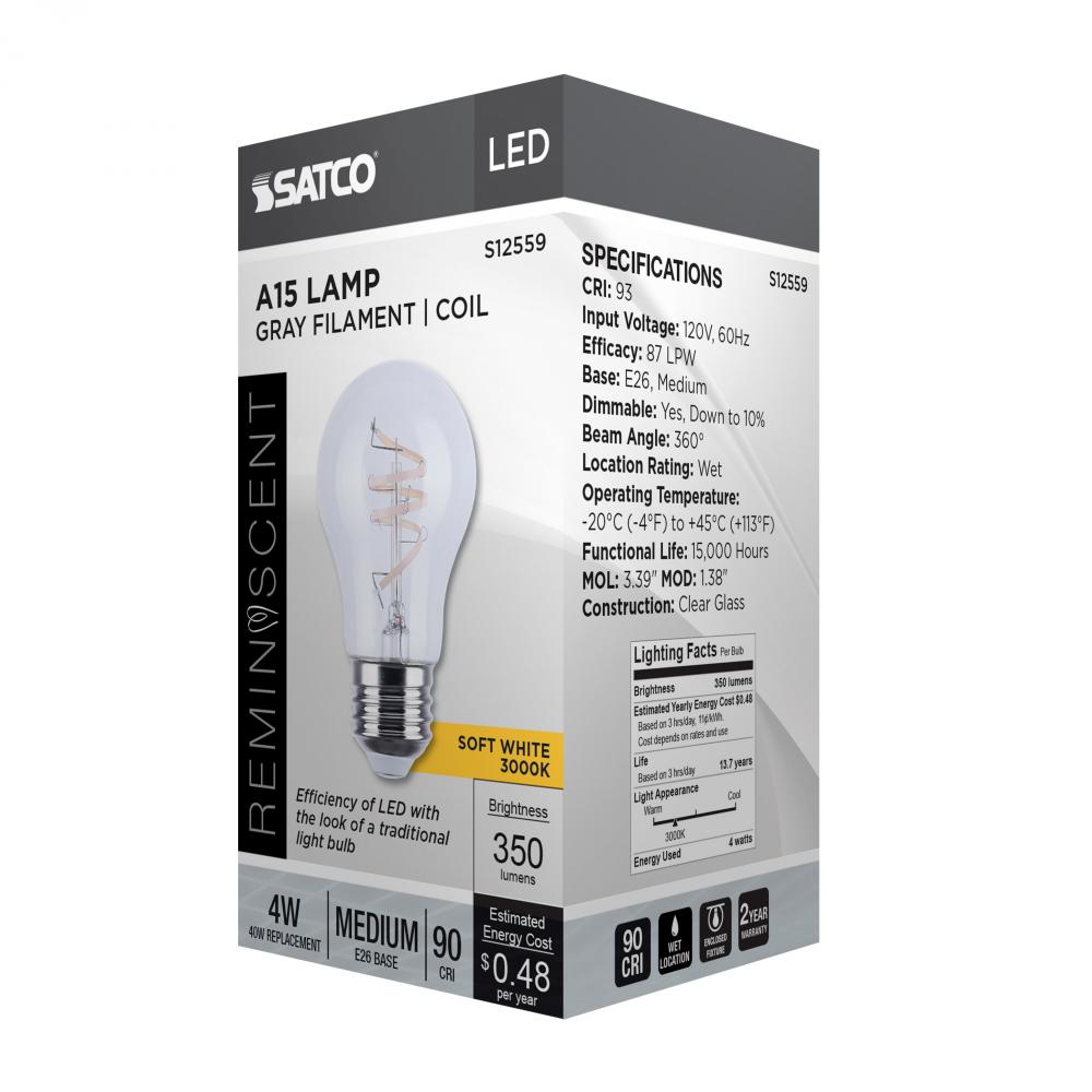SATCO NUVO's S12559 Reminiscent lamps offer the traditional look of tungsten filament bulbs with the energy savings of LED technology. The gray filaments provide a clean aesthetic, blending in with many current fixture and decor trends. With brilliant,