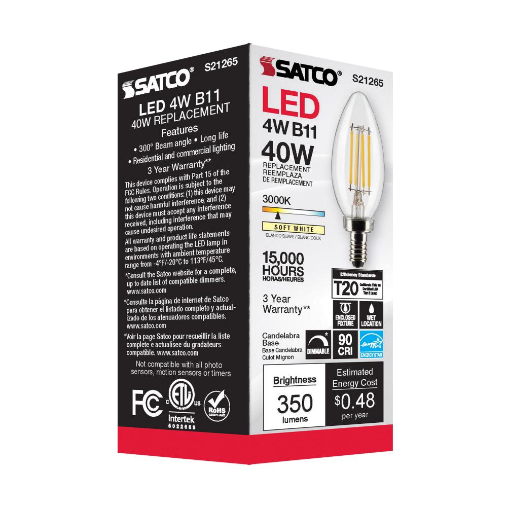 Satco's S21265 4-watt LED lamp is traditional, yet contemporary with its vintage style and energy saving LED technology. Elegantly illuminate any room in the house with this dimmable, clear bulb. Sophisticated and modern, this lamp delivers 15,000 hour