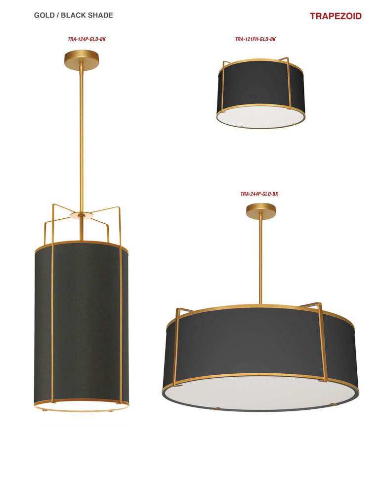 In geometry, the trapezoid is a four-size shape with one set of parallel sides. That shape is repeated throughout the eye-catching scheme of the Trapezoid family of lighting. The trapezoid shape is created by a uniquely crafted metal frame in your choice of finish. A drum-style shade in a variety of shapes determines the overall design. The fabric shade and metal frame come in a range of contrasting and complementary combinations. It's a design with clean outlines for a look that's a contemporary classic, with variations that will add luxury to any room of your home.