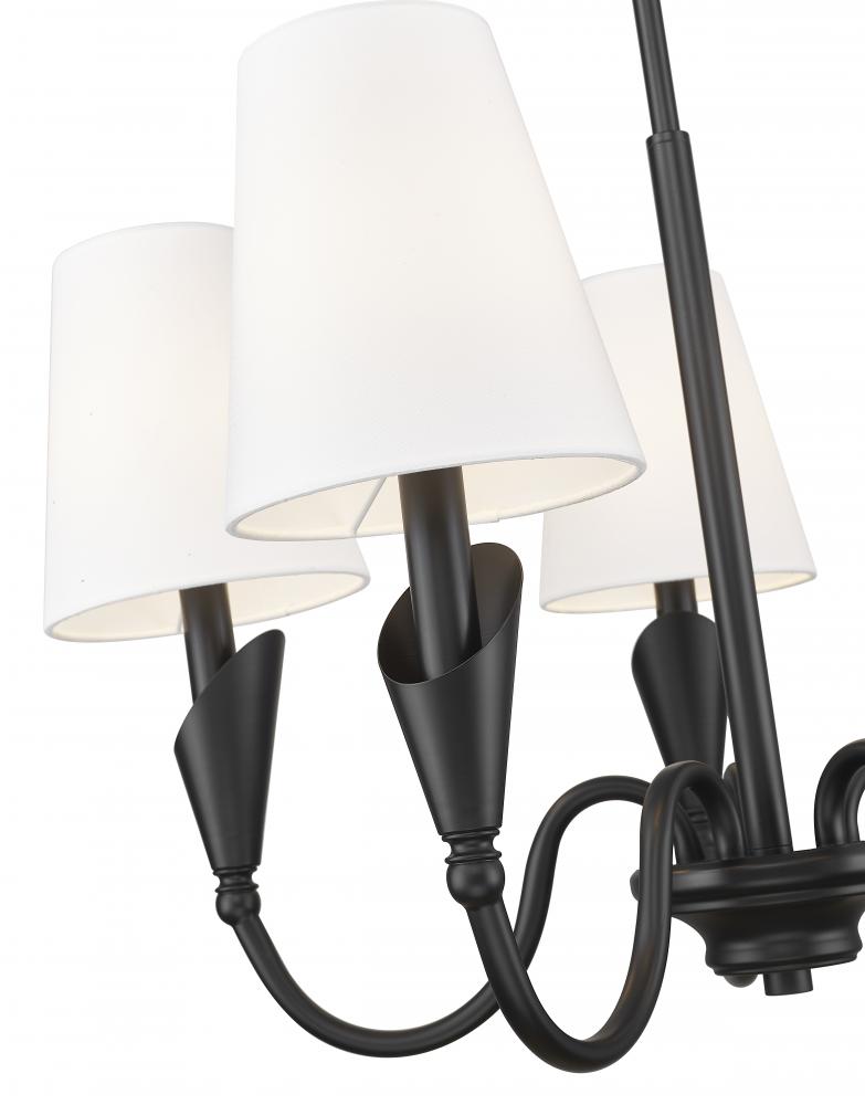 Airy in form and timeless in finish, this matte black chandelier channels the elegance of natural curves. Each arm reaches upward in a calla-lily-inspired silhouette, topped with shades that glow with grace. It?s a versatile piece designed to make a room feel more complete.