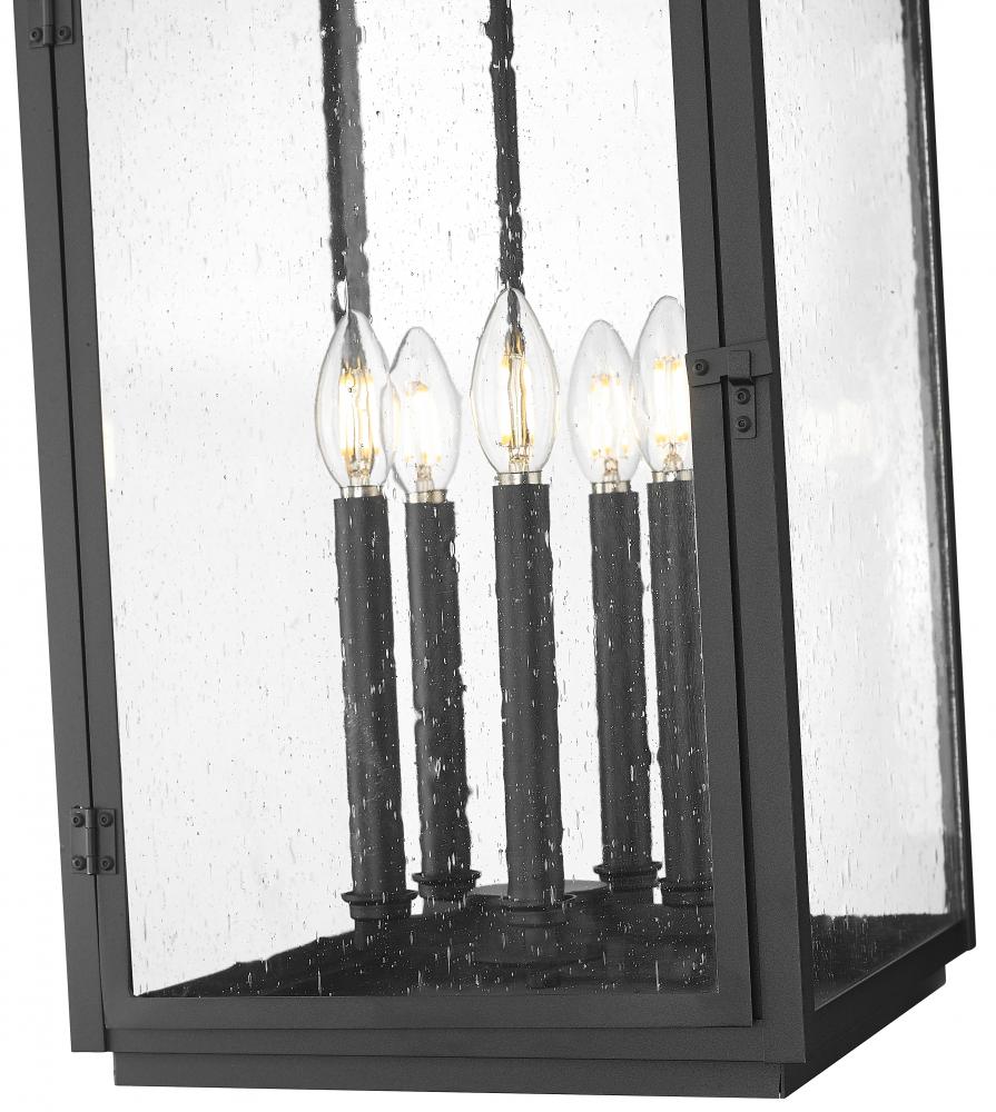 The Hartwell collection evokes the craftsman era with a Mission-like crown and handle on the top and the look of forged metal candles. Ample illumination comes from 1-, 2-, 3-, 4-, 5- and 6-light clusters. Offered in marine grade Black finish.