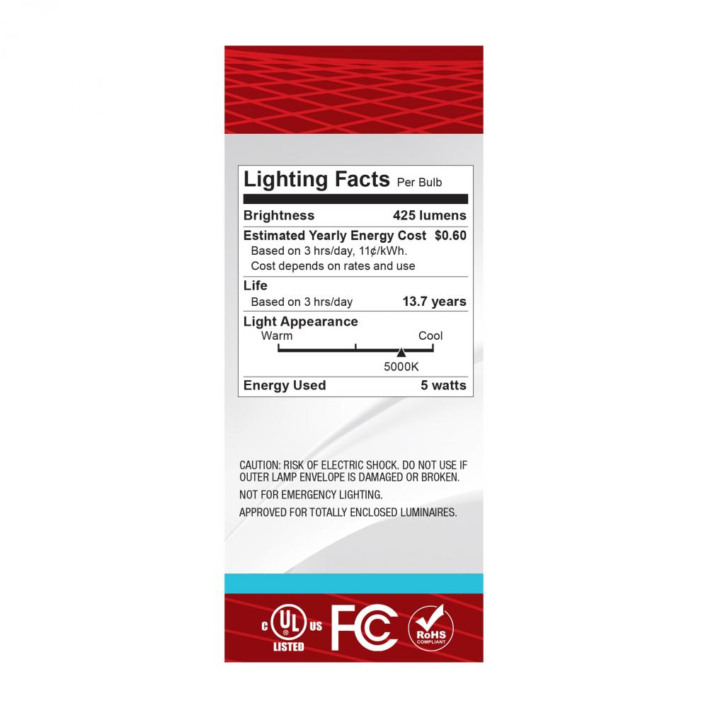 Satco's S12535 5-watt, LED lamp is traditional, yet contemporary with its vintage style and energy saving LED technology. Elegantly illuminate any room in the house with this dimmable, clear bulb. Sophisticated and modern, this lamp delivers 15,000 hou