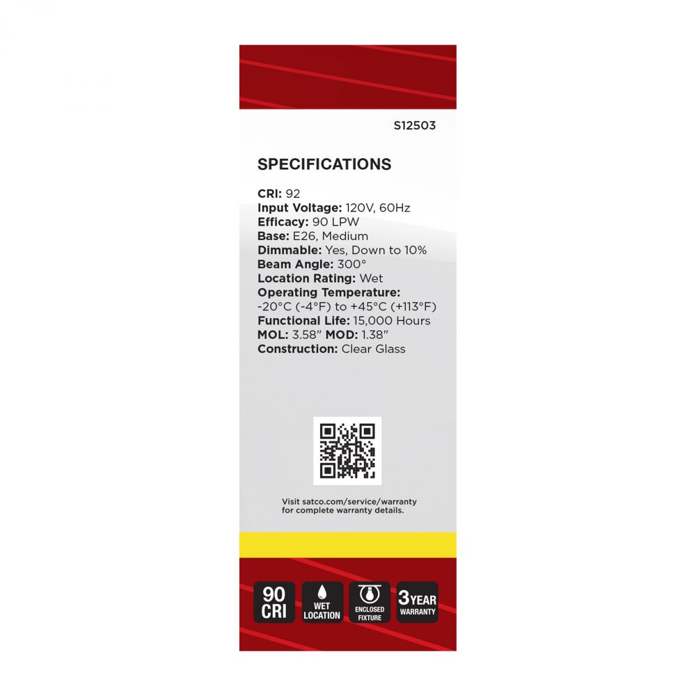 Satco's S12503 5.5-watt LED lamp is traditional, yet contemporary with its vintage style and energy saving LED technology. Elegantly illuminate any room in the house with this dimmable, clear bulb. Sophisticated and modern, this lamp delivers 15,000 ho