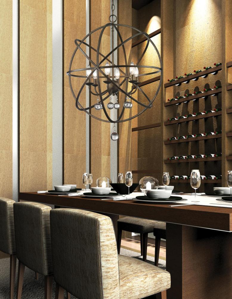 Spherical art at its best! On this 6 light pendant, the rich hues of the golden bronze finish mingle playfully with the crystal spheres sparkling from within.