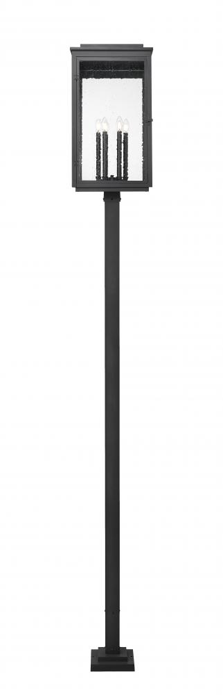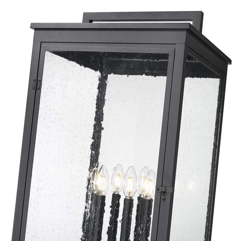 Capture traditional craftsman aesthetics with this Mission style six-light outdoor post mount fixture. From panes of clear seedy glass to its sand black finish, it lends inspired curb appeal to your homes exterior. A smooth, straight post completes the look, adding simplicity to the decorative details featured on the lantern itself.