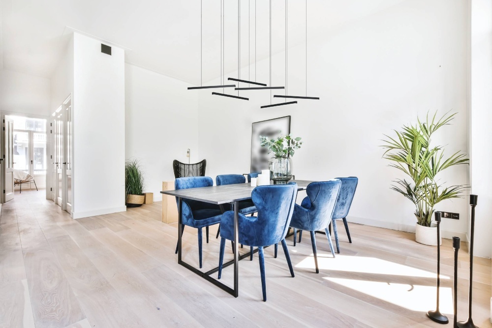 The Lindoza 6 Light Integrated LED Pendant from is a dramatic and fun floating mobile sculpture and a true cahracter piece. Featuring 6 linear sleek lights in a Matte Black finish containing an LED Module diffused by white acrylic, making this a multi-dimensional hanging work of illuminated art.