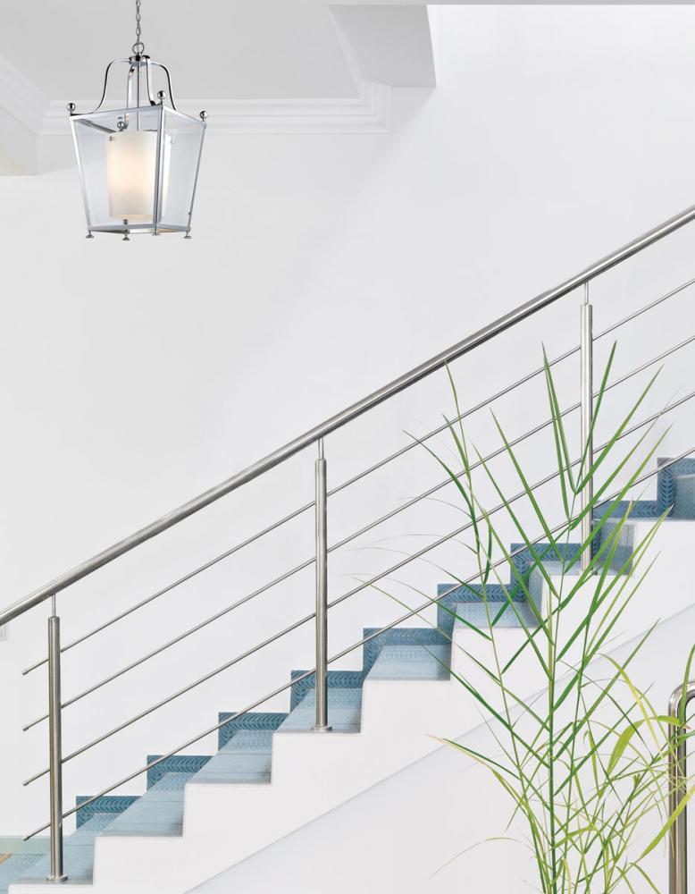 For those looking for a modern look without sacrificing the warmth of the light need to look no further than this fixture. The combination of clear beveled glass on the outside and matte opal glass on the inside allow for the chrome geometric shape to create a very modern look, while still emanating the warm glow found in traditional fixtures. This truly is the best of both worlds