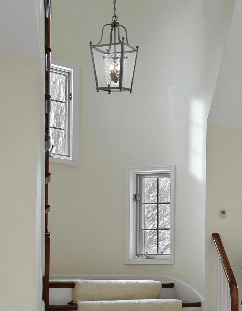 For those looking for a modern look without sacrificing the warmth of the light need to look no further than this fixture. The combination of clear beveled glass on the outside and clear hammered glass on the inside allow for the bronze geometric shape to create a very modern look, while still emanating the warm glow found in traditional fixtures. This truly is the best of both worlds.
