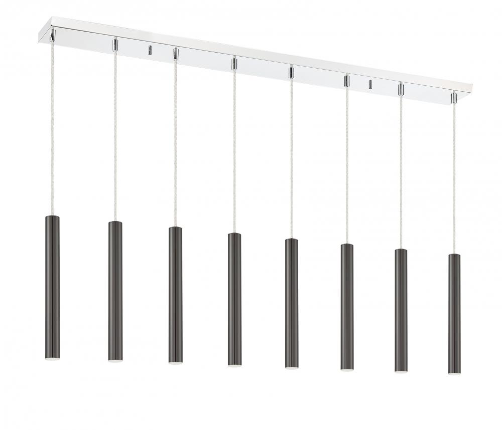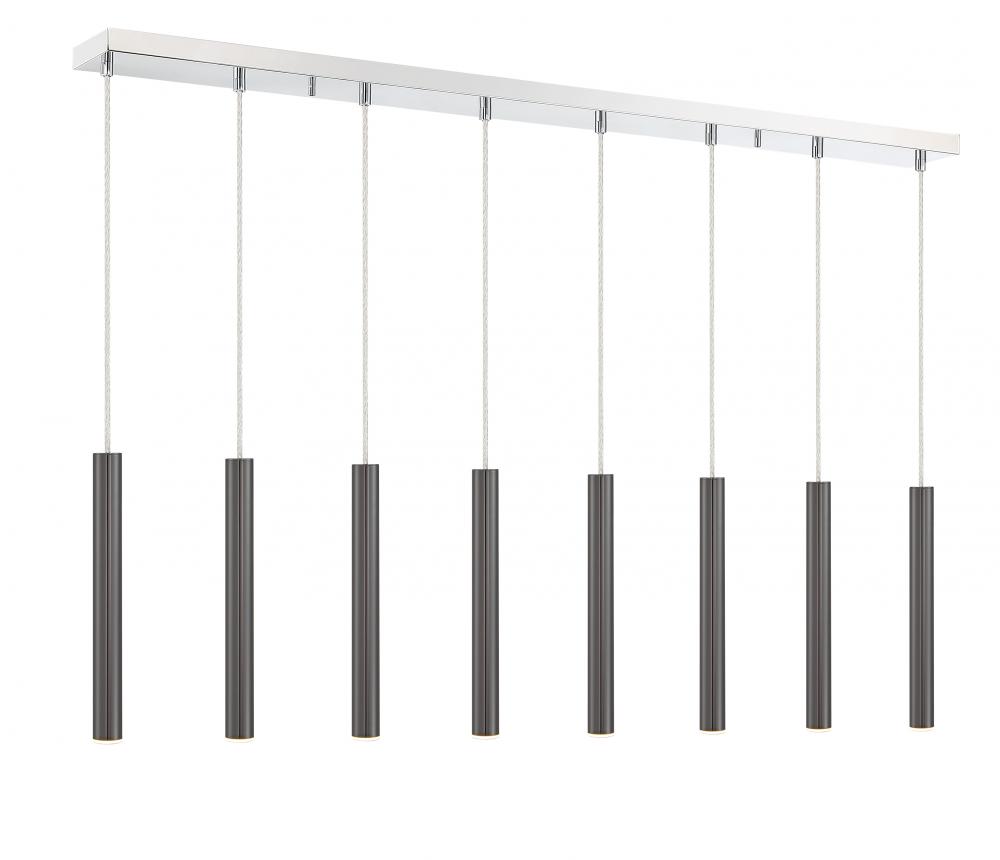 Create a stunning visual with the pearl black finish from this ten-light pendant light. Full of charm, the elongated lines and soft glow are beautiful and sophisticated.