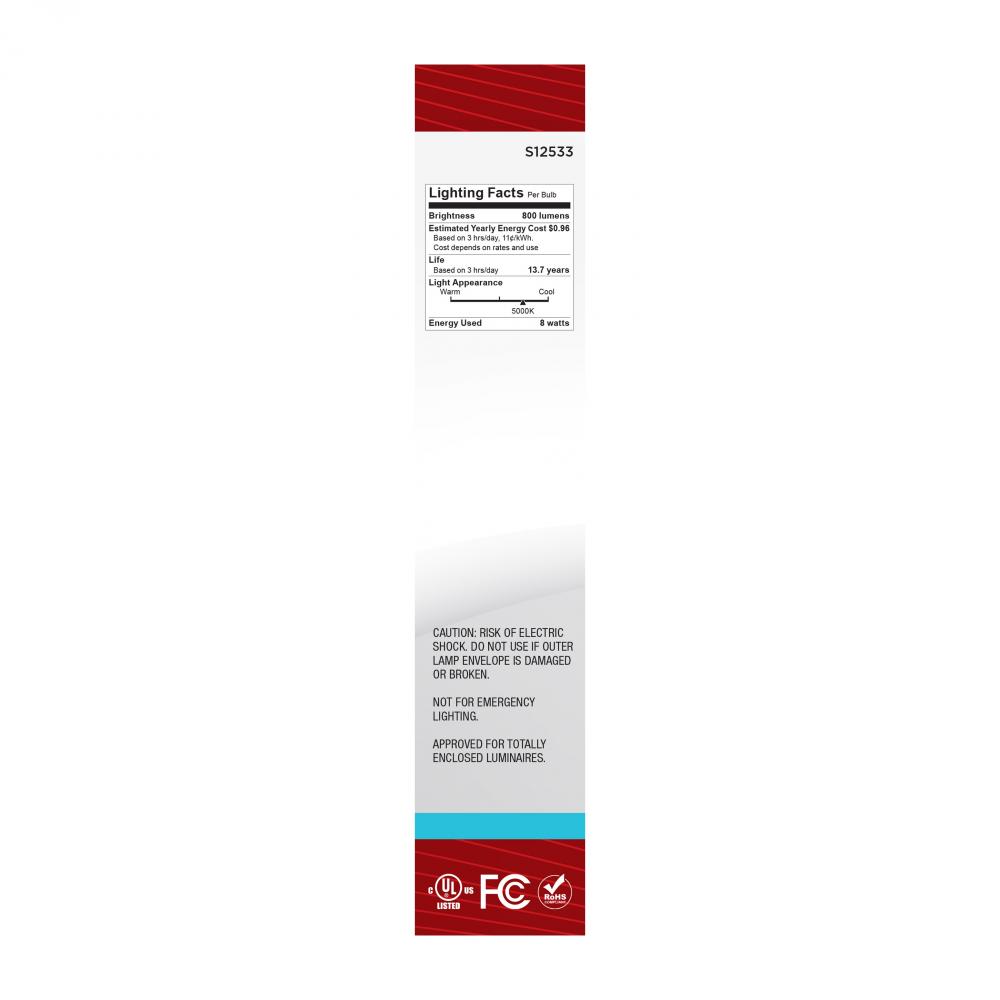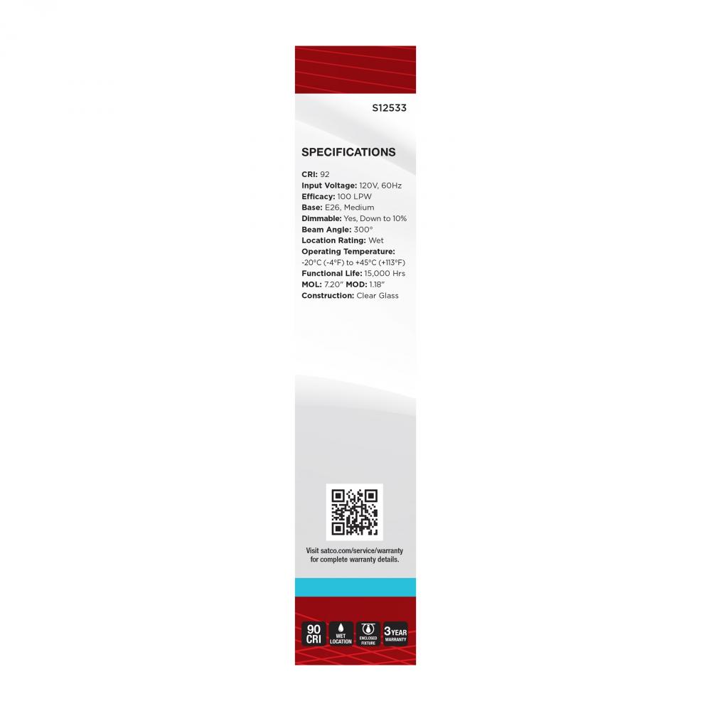 Satco's S12533 8-watt, LED lamp is traditional, yet contemporary with its vintage style and energy saving LED technology. Elegantly illuminate any room in the house with this dimmable, clear bulb. Sophisticated and modern, this lamp delivers 15,000 hou