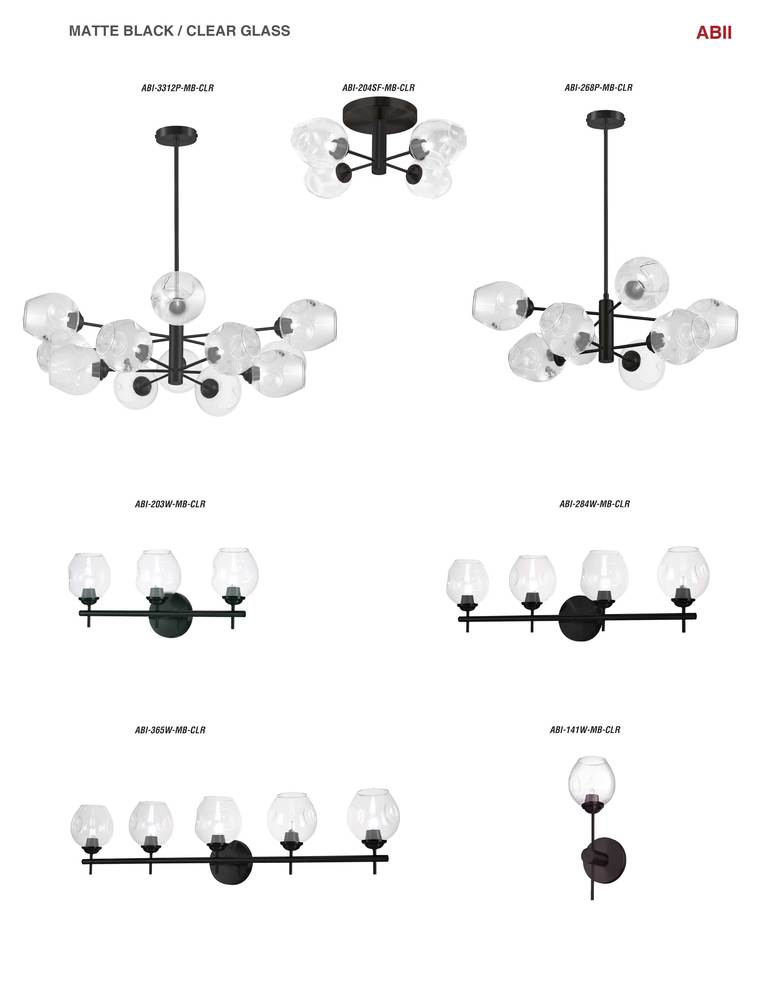 The eye-catching contrast of glass globes and sleek straight lines form the basis of the ABII family of lighting fixtures. It's a versatile and adaptable design with options ranging from a single sconce to a large pendant light in a look that can work with virtually any room or design scheme. The metal base and arms create a pattern to showcase the reflective effects of the glass globes. Colorway options include complementary finishes from warm to stylishly dramatic. Halogen lights add a warm glow. From ultra-modern minimalism to mid-century and even more traditional décors, the ABII family of lighting’s transitional design is both luxurious and timeless in its appeal.