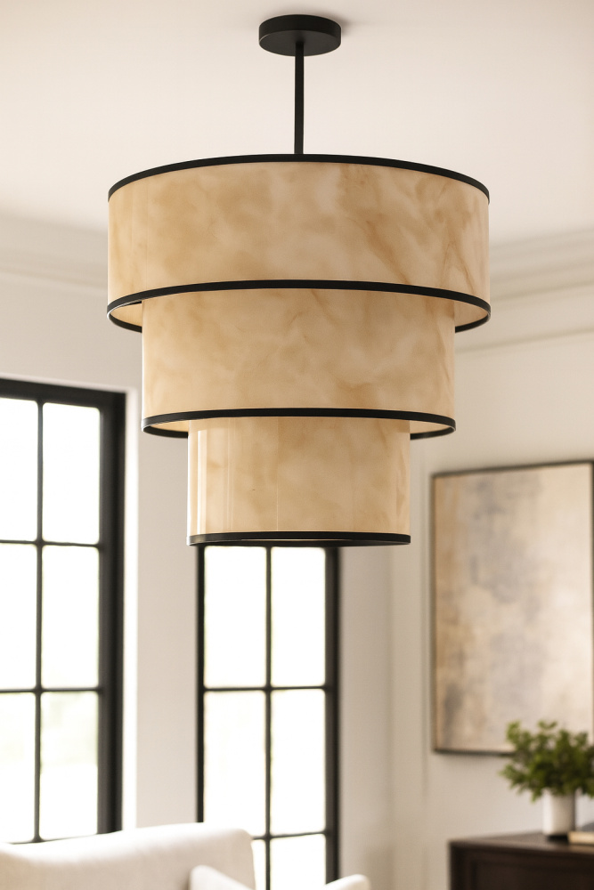 34W Pendant, Matte Black w/ Marble Alabaster Shade