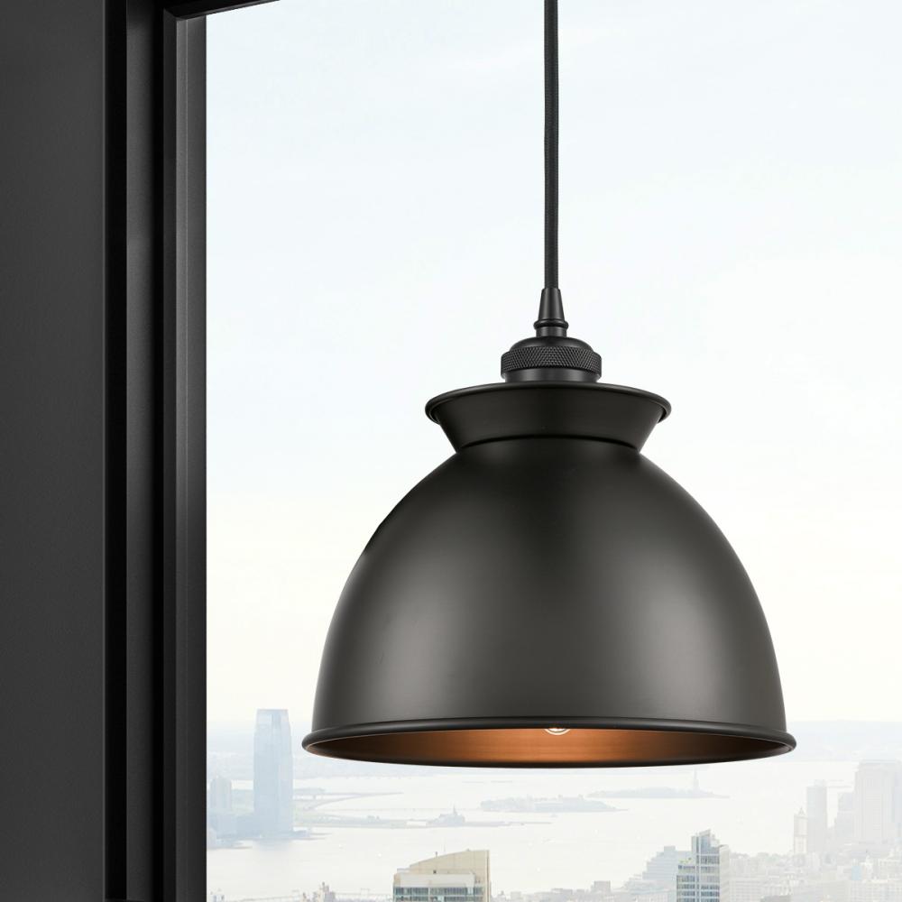 Adirondack - 1 Light - 8 inch - Matte Black - Matte Black Shade - Cord hung - Mini Pendant