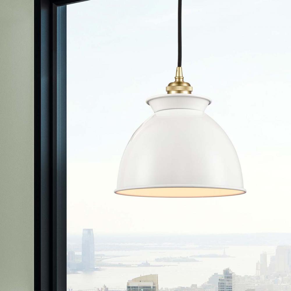 Adirondack - 1 Light - 8 inch - Satin Gold - Glossy White Shade - Cord hung - Mini Pendant