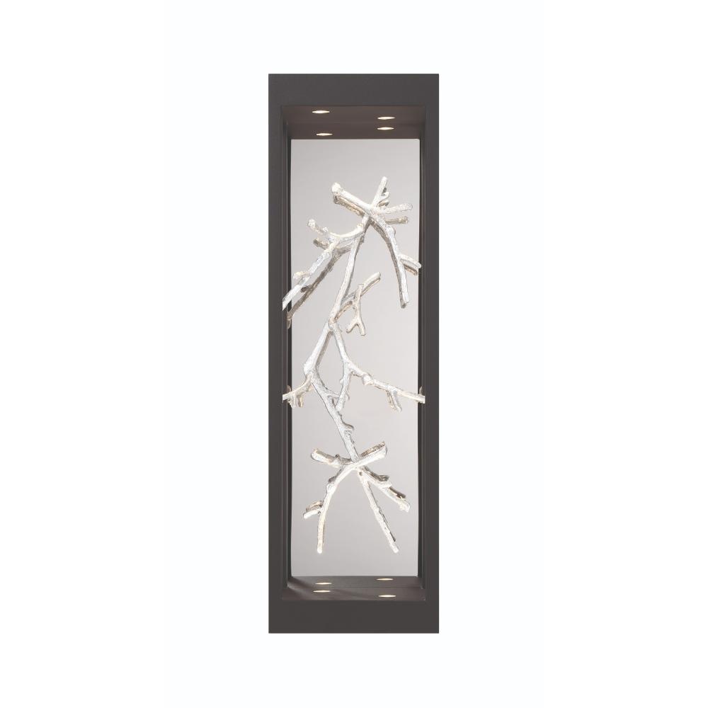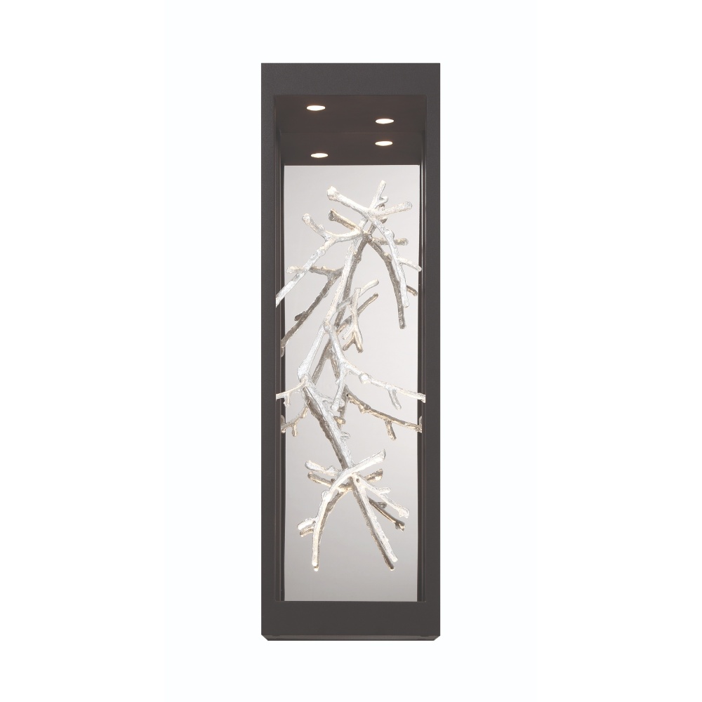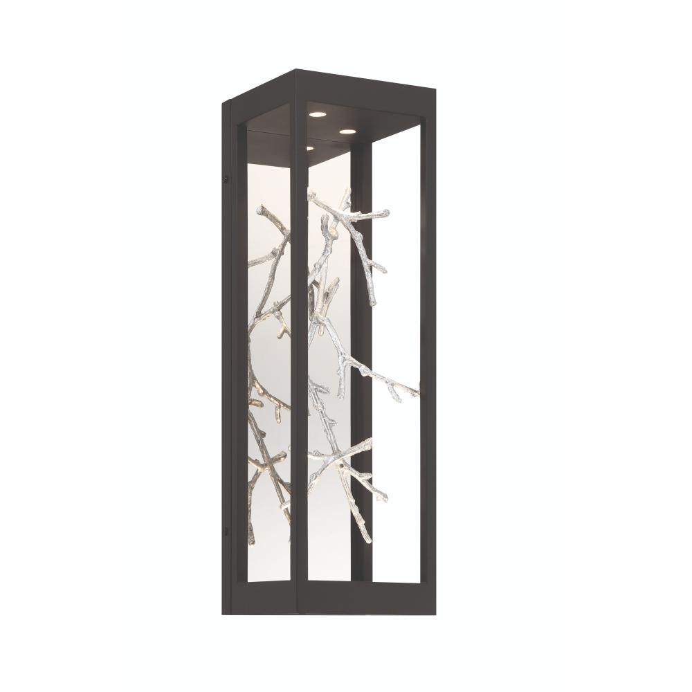 Free-flowing, gilded branches of gold float elegantly within a stylish open cage constructed of cast brass and finished for the rigors of outdoor environments. The thin twigs are handcrafted with metal foil and accentuated by pinhole recessed LED lighting to add a luxurious glow to this nature-inspired collection.