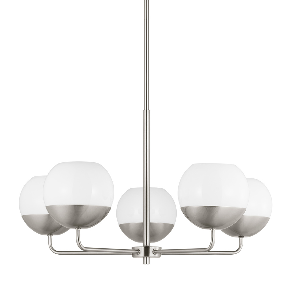 Alvin embodies a classic Midcentury design. The arms of the chandelier are on a pivot to direct light in any specific direction. The brushed nickel silver, Midnight Black or Satin Brass, and opaque white combine creating an elegant color palette that will work well in almost any décor.