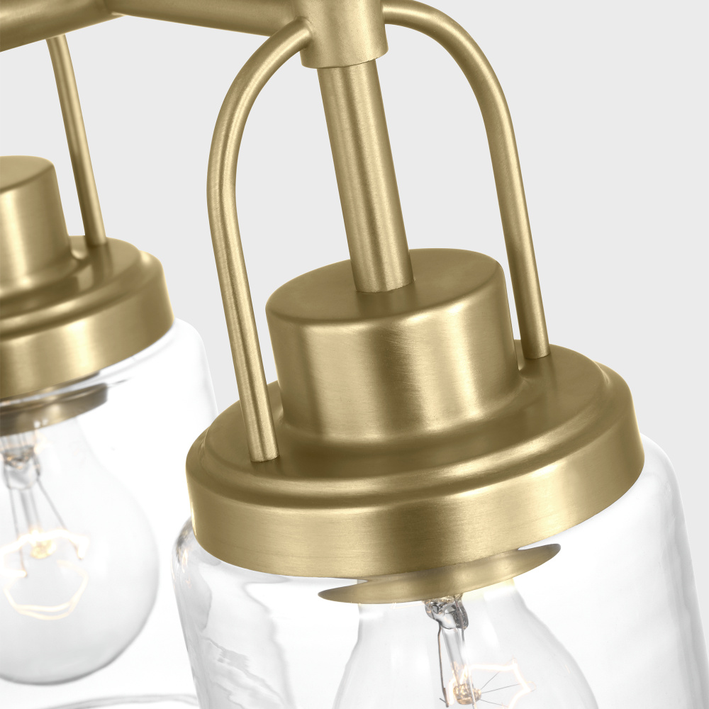 Crafted with Steel in a Satin Brass finish with clear glass shades