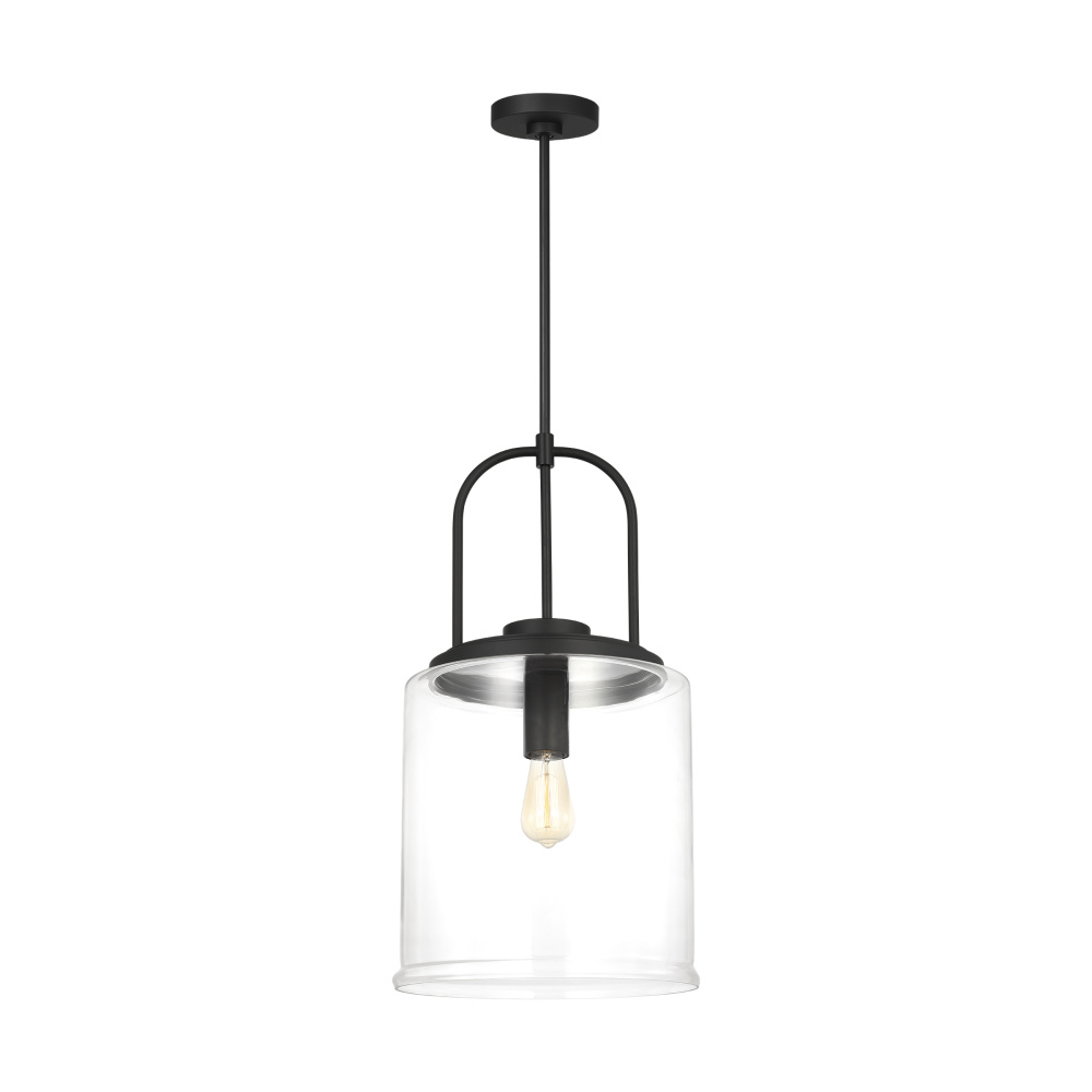 Crafted with Steel in a Midnight Black finish with clear glass shade