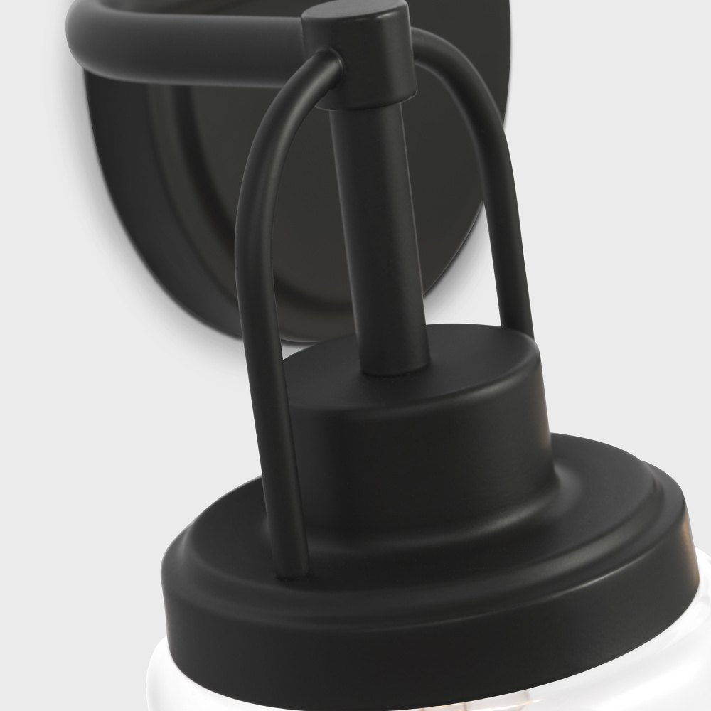 Crafted with Steel in a Midnight Black finish with clear glass shades