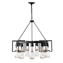 Gracefully held in place by detailed steel cuffs and a large circular frame, nine hand-blown hourglass vessels capture pools of downward light. The glass elements speak to the apothecary jars of an earlier time, while the metalwork reflects clean contemporary lines. The round Apothecary Chandelier is a part of Hubbardton Forge’s Apothecary Collection, blending simplicity in form with richness in materials and finish—easily adaptable to a wide range of styles.