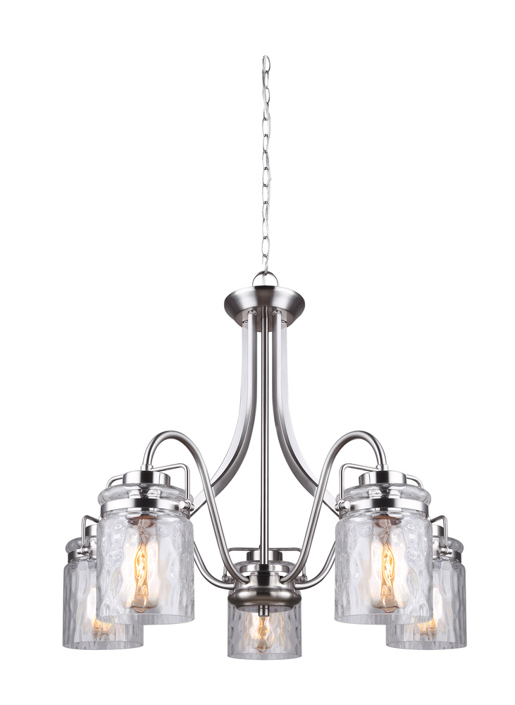 ARDEN, 5 Lt Chain Chandelier, Watermark Glass, 100W Type A, 25 1/4" W x 23 1/2" H