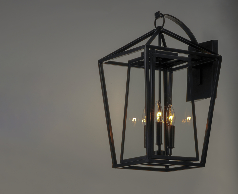This frame inside a frame design is the perfect update to this classically inspired outdoor lantern. Durable stainless steel construction is finished in Black and supports an inner frame of Clear panels of glass for a crisp and clean appearance.