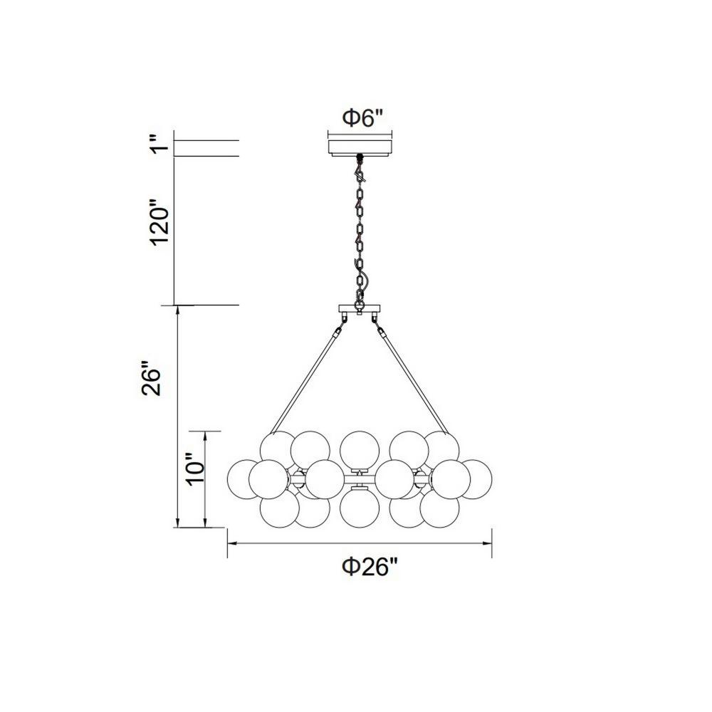 A celestial light fixture that makes you feel clouds are over your head. with heavenly beauty, this white and satin gold chandelier is composed of 25 frosted glass globes connected to a luxe satin gold metal frame. The pendant drop measures 26 inches in di