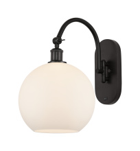 the arm swivels side to side at the base and the solid brass 180 degree adjustable swivel at the top of the socket has internal teeth that lock in at 5 degree intervals and allows for up and down tilting of the shade