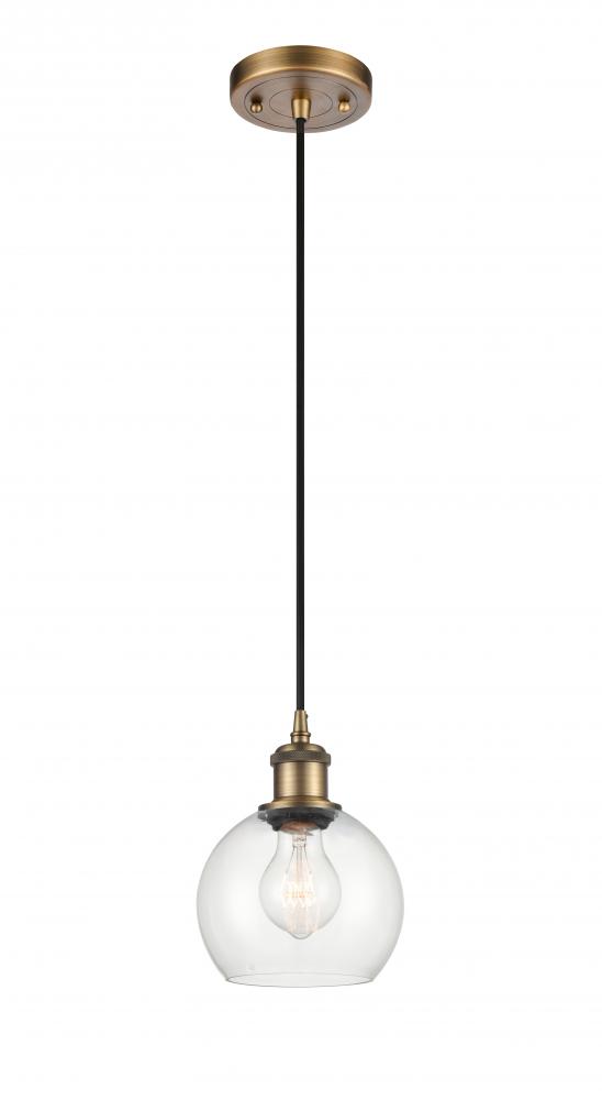 Athens - 1 Light - 6 inch - Brushed Brass - Clear Shade - Cord hung - Mini Pendant