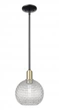 Athens - 1 Light - 8 inch - Matte Black - Clear Basket Weave shade - Stem hung - Mini Pendant