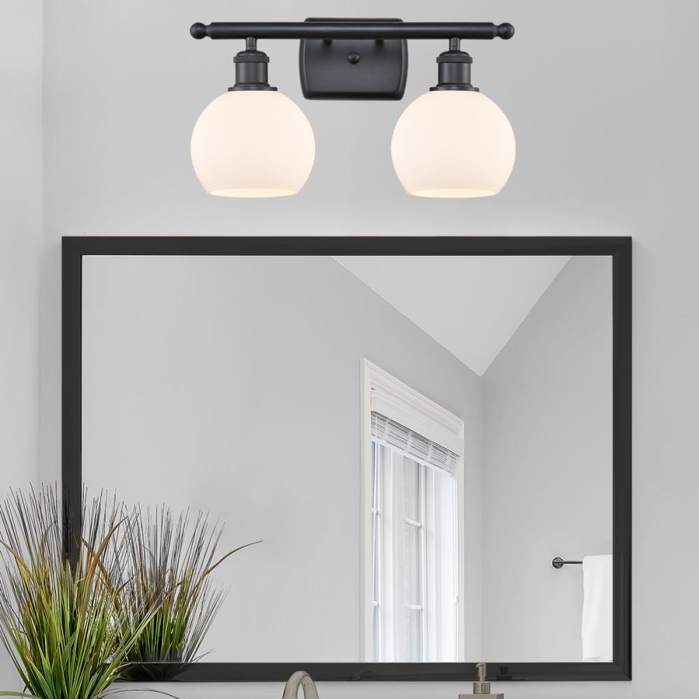 Athens - 2 Light - 16 inch - Matte Black - Matte White Shade - Bath Vanity Light