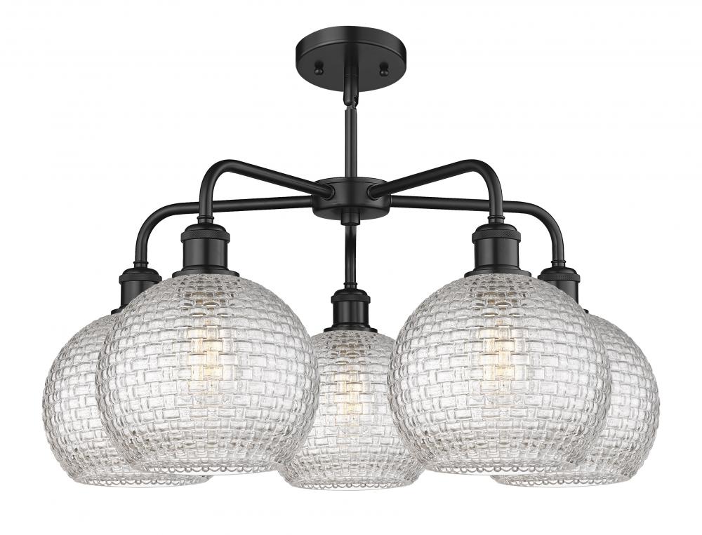 Athens - 5 Light - 26 inch - Matte Black - Clear Basket Weave Shade - Chandelier