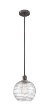 Athens Deco Swirl - 1 Light - 10 inch - Polished Nickel - Clear Deco Swirl shade - Stem hung - Mini Pendant