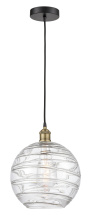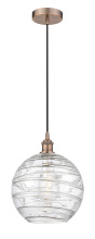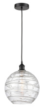 Athens Deco Swirl - 1 Light - 12 inch - Polished Nickel - Clear Deco Swirl shade - Cord hung - Mini Pendant
