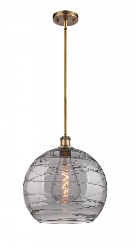 Athens Deco Swirl - 1 Light - 14 inch - Brushed Brass - Light Smoke Deco Swirl Shade - Pendant