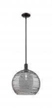 Athens Deco Swirl - 1 Light - 14 inch - Brushed Brass - Clear Deco Swirl shade - Stem hung - Mini Pendant