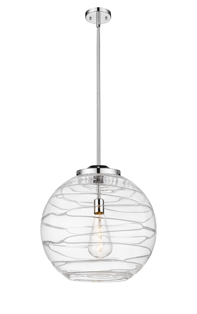 Athens Deco Swirl - 1 Light - 18 inch - Polished Chrome - Clear Deco Swirl shade - Stem Hung - Pendant
