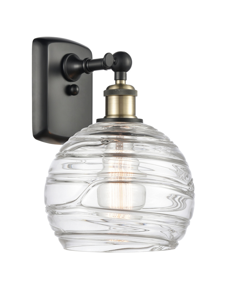 Athens Deco Swirl - 1 Light - 8 inch - Black Antique Brass - Clear Deco Swirl shade - Sconce