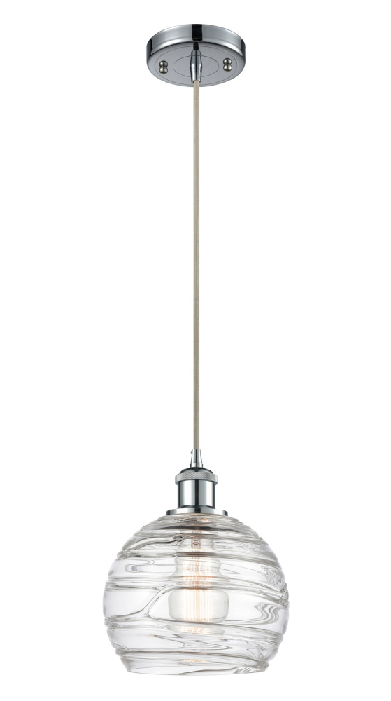 Athens Deco Swirl - 1 Light - 8 inch - Polished Chrome - Clear Deco Swirl shade - Cord hung - Mini Pendant