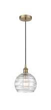 Athens Deco Swirl - 1 Light - 8 inch - Polished Nickel - Clear Deco Swirl shade - Cord hung - Mini Pendant