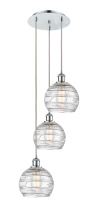 Athens Deco Swirl - 3 Light - 15 inch - Brushed Satin Nickel - Clear Deco Swirl shade - Cord Hung - Multi Pendant