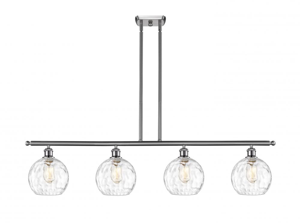 Athens Water Glass - 4 Light - 48 inch - Brushed Satin Nickel - Clear Water Glass Shade - Stem hung - Island Light
