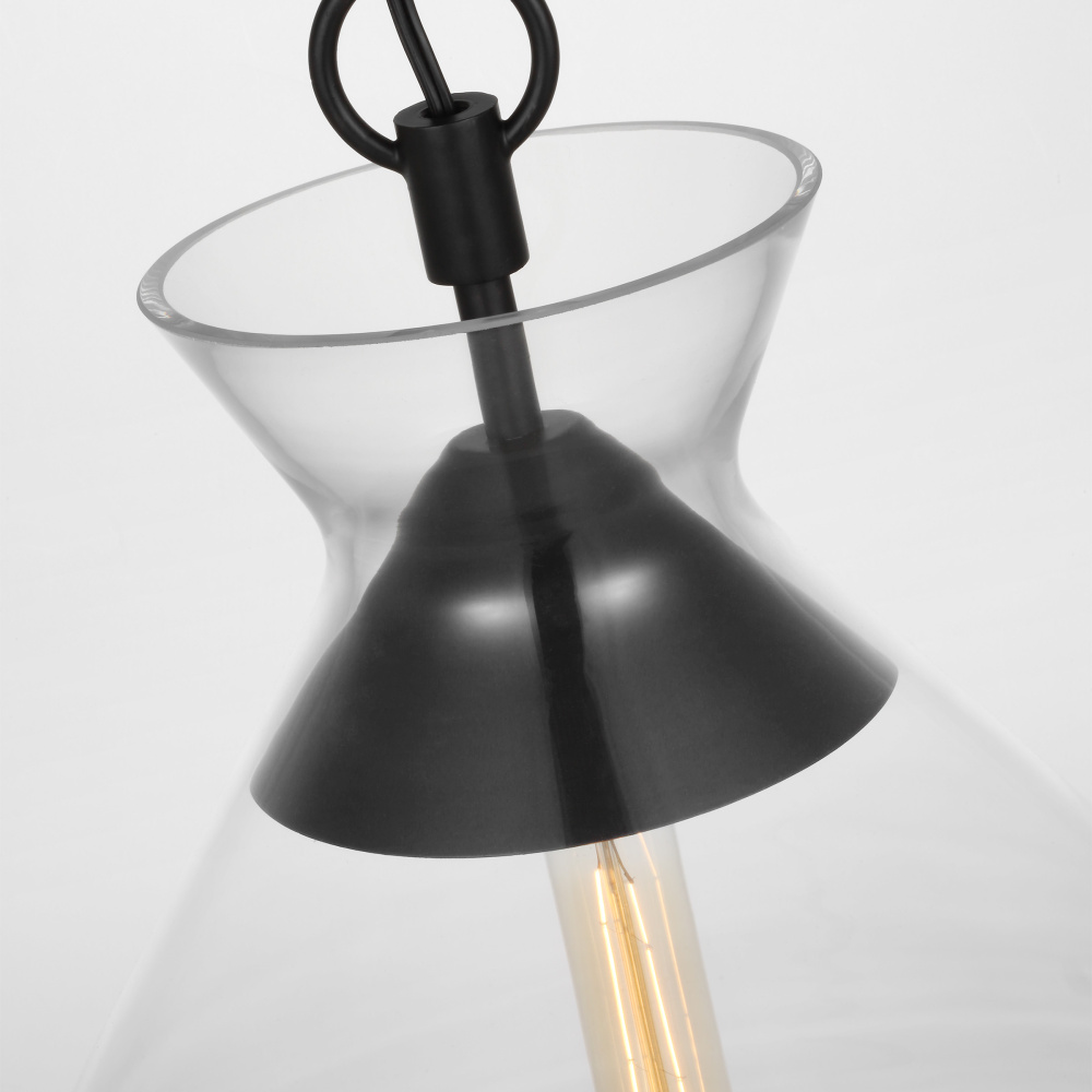 Designed by Chapman & Myers, the Atlantic series features globe and conical Clear Glass pendants paired with hardware in rich finishes; these work well singularly or in multiples to elevate any room. The lamping suspends from the center and appears floating within the Clear Glass shade.