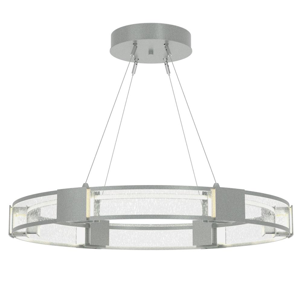 The popular Aura with a contemporary glass brightens any space. With lighting as functional as it is beautiful, the Aura's light is dispersed via its curved, double glass panels offered in either frosted or clear seeded glass. Six handcrafted steel elements serve to shade and adorn this stunning ceiling fixture.