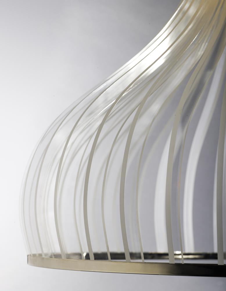A sculpture of durable steel and aluminum channel is gracefully formed with offsetting waves of motion. This collection is fully dimmable for a great combination of form and function.