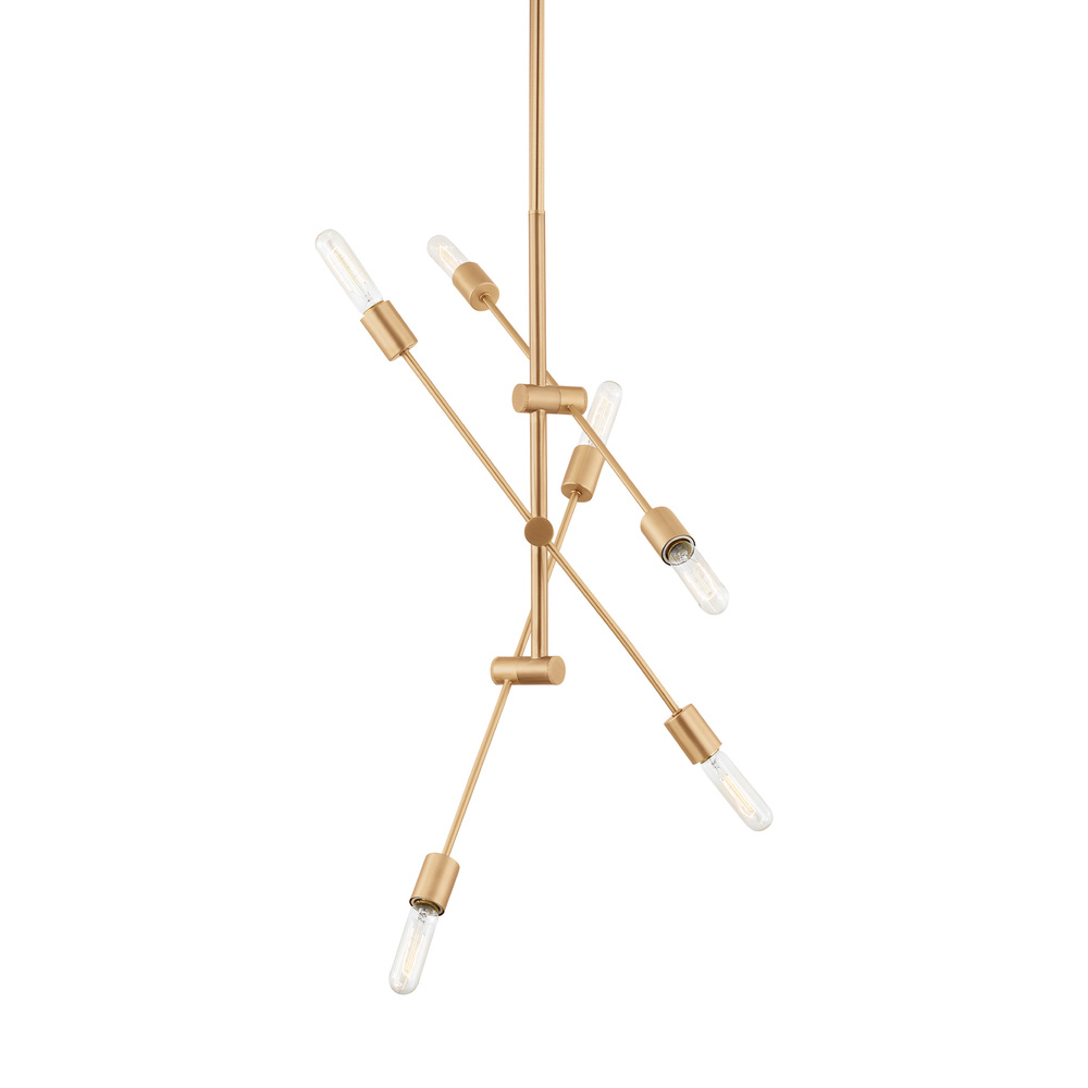 Axis is a simple and refined industrial design where form and function are the design elements. Fully articulating arms make this a truly versatile collection. The arms meet at fully pivotable mechanisms, arms can be adjusted before or after the fixture is installed, to fit a tall foyer or have a low and wide horizontal chandelier.