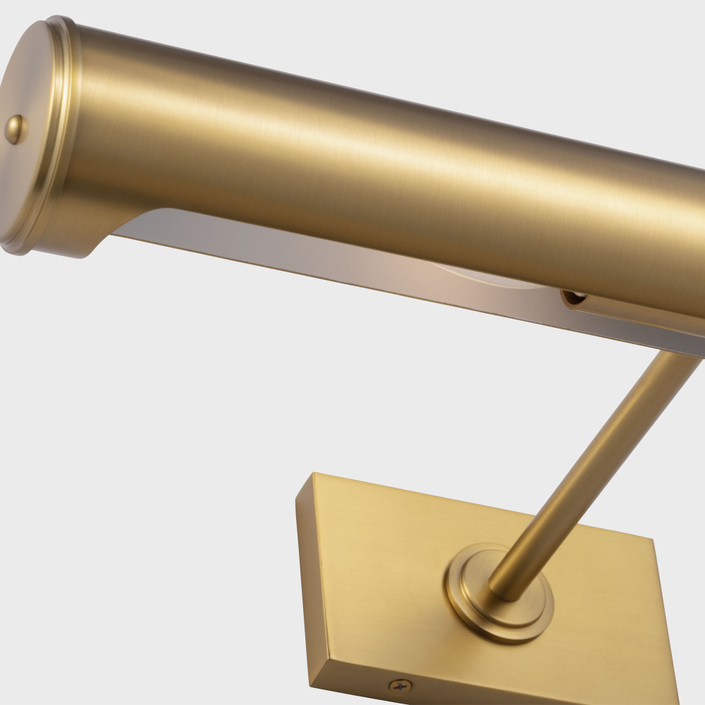 Crafted with Steel in a Burnished Brass finish with burnished brass steel shade