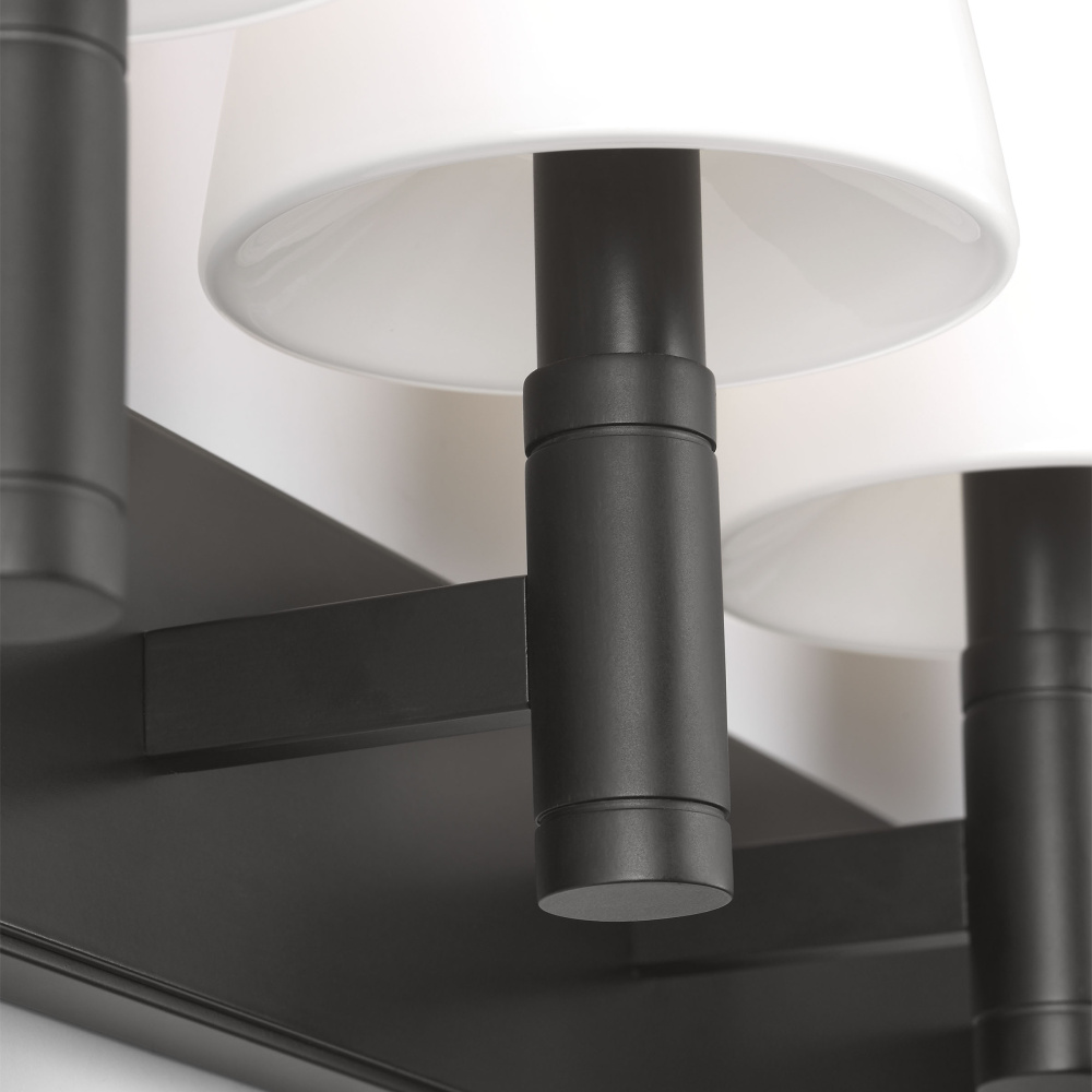 Crafted with Steel in a Aged Iron finish with milk glass shades