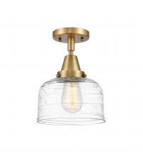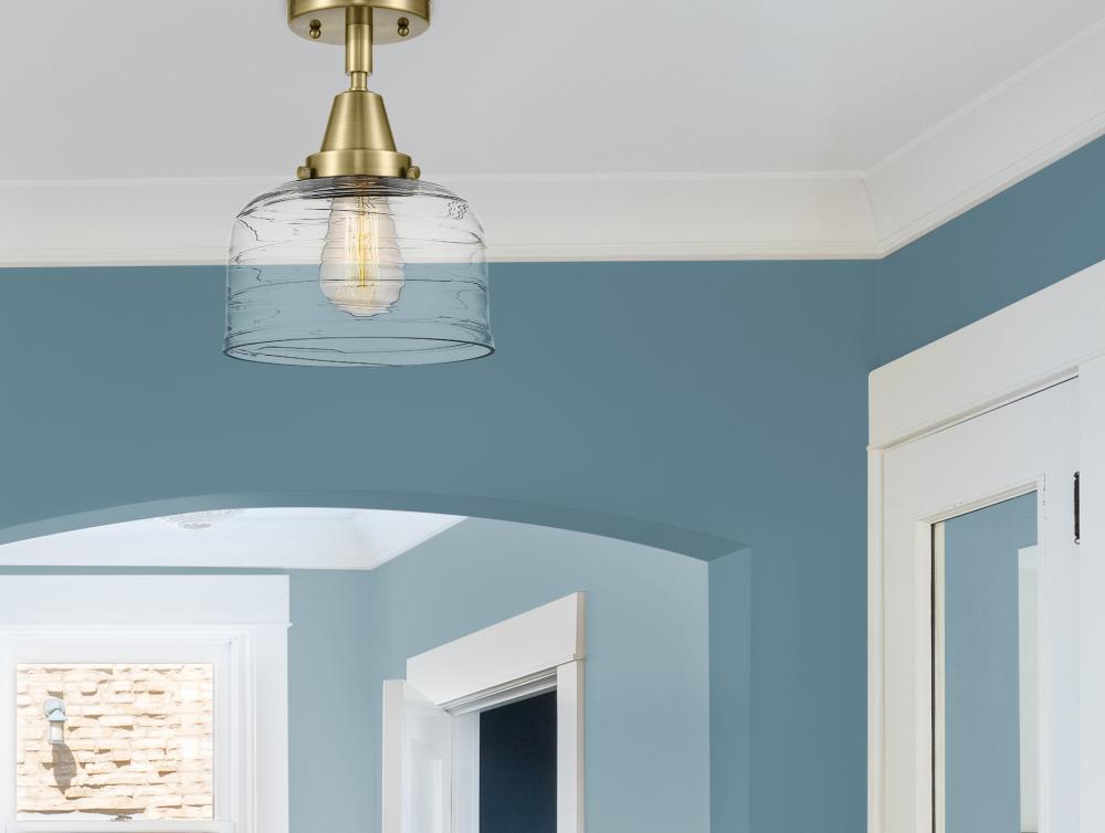 Bell - 1 Light - 8 inch - Antique Brass - Clear Deco Swirl Shade - Semi-Flush Mount